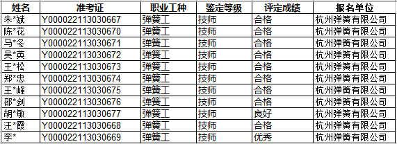 2023-03-142022年12月10日-2023年2月25日,我司進行了彈簧制作工二級、三級認定,現將通過認定的名單予以公示(詳見下圖),公示期從2023年3月14日-3月21日,監督電話:0571-86260220,李老師、種老師。 ...
